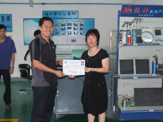 彭經(jīng)理頒發(fā)“汽車車身修復(fù)技能認(rèn)證合格證書(shū)”