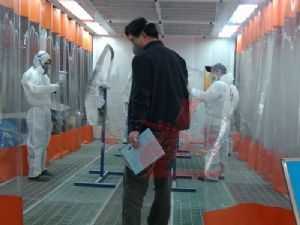 參賽選手使用龍神贊助的油漆色樣烤箱和對色燈箱進行調(diào)漆對色
