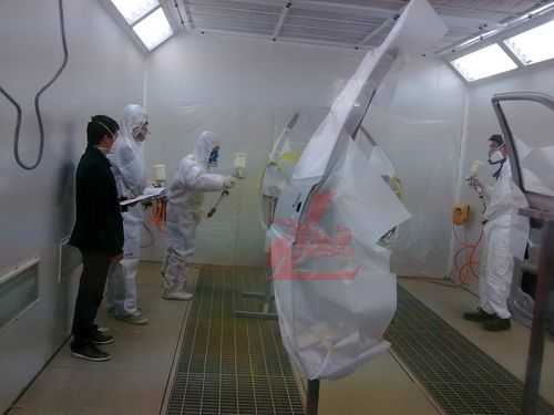 參賽選手統(tǒng)一著裝龍神贊助的噴漆防護進行規(guī)范化的車身噴涂比賽